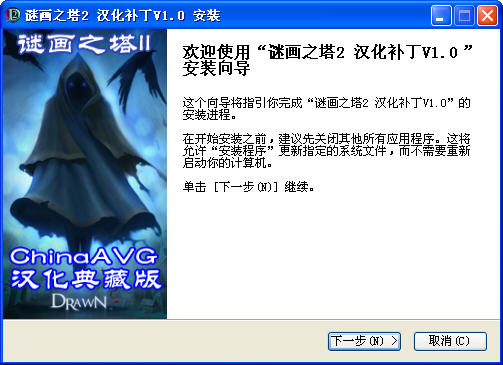 下载完成后解压缩,运行“谜画之塔2汉化补丁@Chinaavg-DrawnII_chs.exe”,安装在全英文目录的谜画之塔2安装根目录下。
