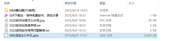 1、解压后,得到GBA模拟器,和龙战士2的封印游戏文件;