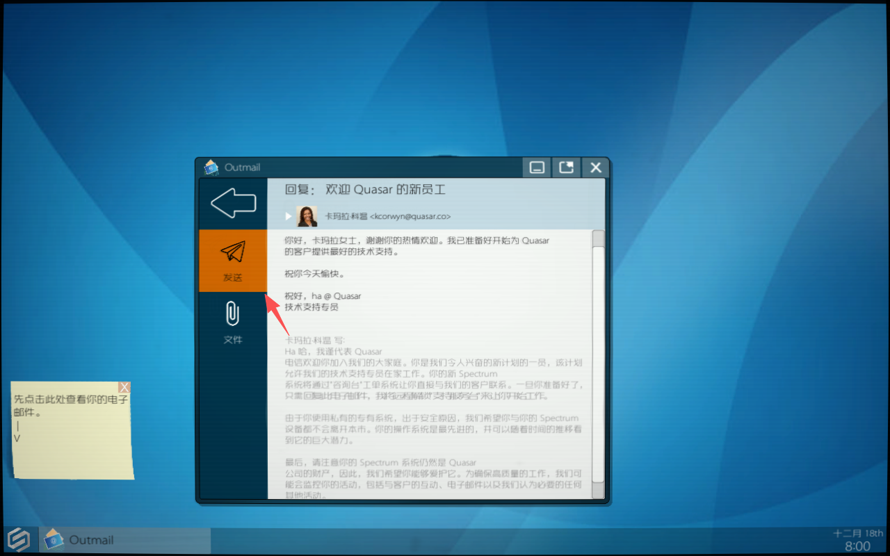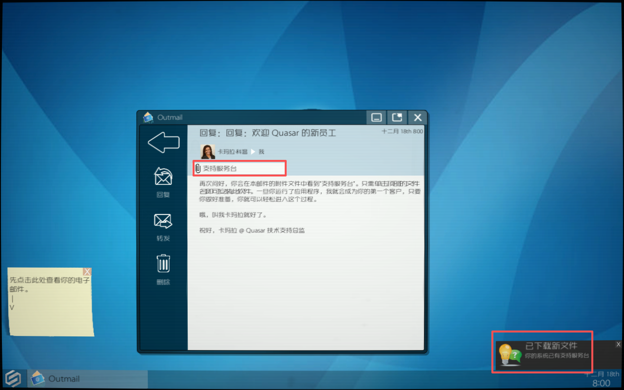 对于新手来说,按照攻略一步步操作就能很快上手了。创建角色、登录系统、查看邮件、回复客户……这些步骤简单明了。虽然我对技术工作不算特别熟悉,但游戏的程序对话系统让整个流程变得很有趣。