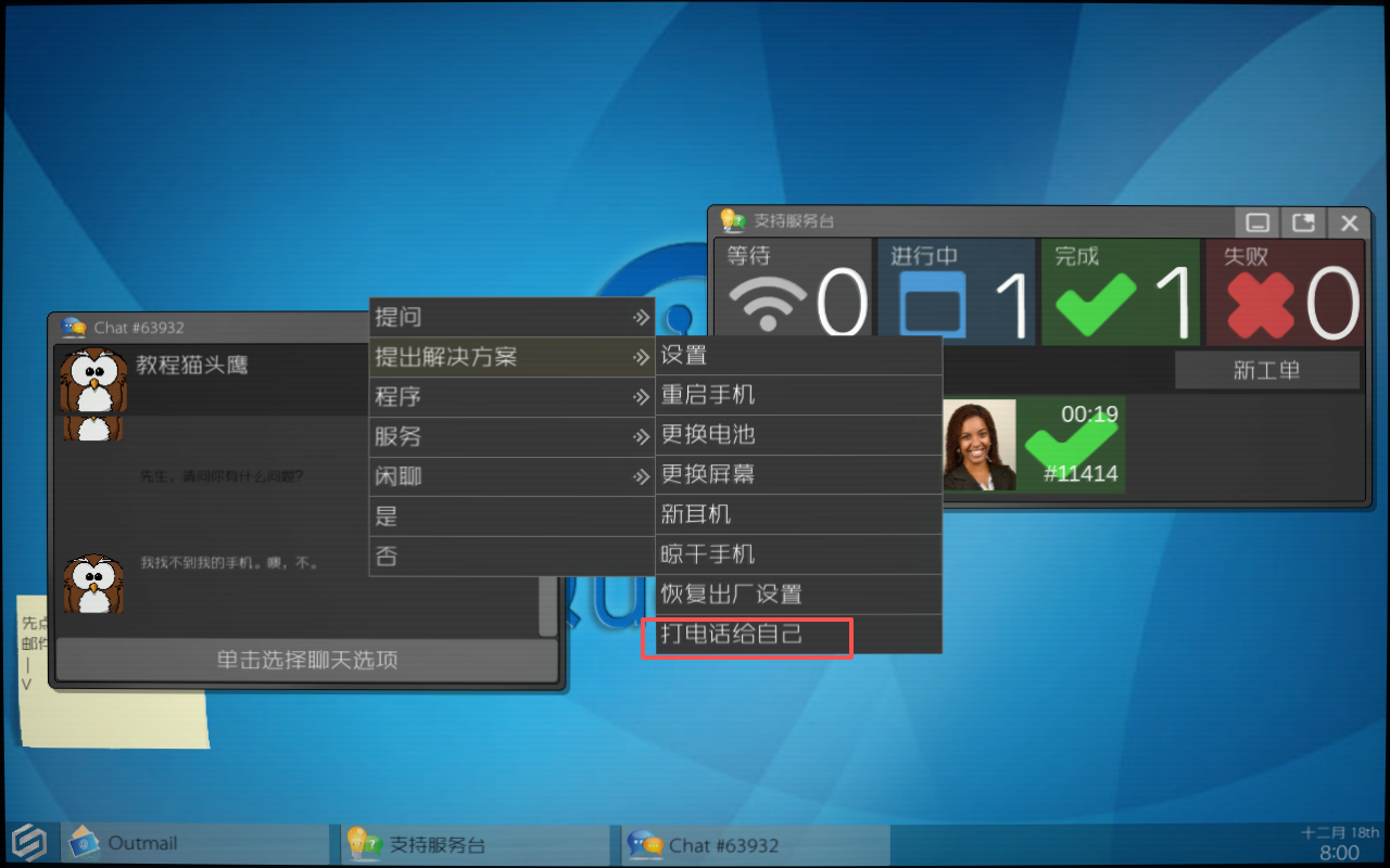 游戏的核心玩法就是在模拟电脑上使用邮件、日志等工具处理客户的求助。比如遇到手机丢失的情况,你既可以帮忙想办法找回,也可能选择冷处理甚至敲诈客户。这种道德上的选择让人感觉特别真实。
