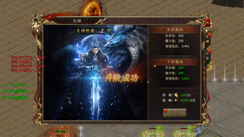 5、还有天神以及地魔,不过这些玩家可以尽情升级,因为两者升级都有各自独一无二的材料消耗,无需担心资源共享,但后期需要注意金币的消耗。