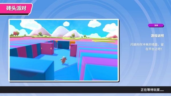 提示:这张图我也就碰到过 2 次,是一个平台不大的关卡。个人推荐是尽量找人少的一侧就行规避,然后条件允许的话站在场地的前半场方便第一时间跳跃障碍和避免被推下去的可能。这张图最怕的就是最后人群都堆在一起然后空间狭小的情况下由于体积碰撞导致自己不能及时规避障碍物然后被淘汰。