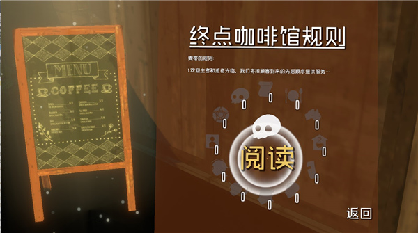 终点咖啡馆游戏玩法简单,和传统视觉小说类似,主要是通过简单的互动和点击。期间玩家将扮演女主角麦蒂经营咖啡馆,人们会在这里度过人生的最后二十四小时。你可以好好告别这段人生,也可以继续探索这家谜题重重的咖啡馆,或者跟通幽术咖啡师和两百多岁的帅哥服务生交朋友,游戏故事的剧情全由玩家来推进。另外,值得一提是游戏的音乐和配乐阵容非常豪华,由 Kevin Penkin 亲自操刀制作的游戏原声,全程中文语音,由森中人等多位国内知名声优献声,致力于带给玩家前所未有的3D视觉小说体验。