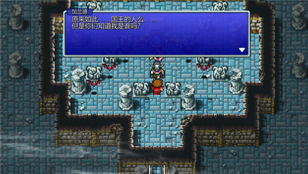 进入暗之世界,上方的门就是魔王的所在地,但现在就鲁莽进去就会落得刚才一样的下场。四个角落分别都有一扇门,里面分别藏着四颗暗之水晶。打倒守护水晶的怪物,将四位暗之战士解救出来后得到了暗之战士赐予的力量。结合了光与暗的力量的四人现在可以上前去面对最后的BOSS了。方才的失败正是因为魔王拥有四所没有的暗之力量,如今四位暗之战士将魔王的暗之力量制约了。好了,一决胜负吧!最终之战的激烈程度务须多言,虽然暗之力被制约但毕竟最终BOSS也不是吃素的,高达三动的无耻实力很容易使我方的成员瞬间被秒。全力一战吧!