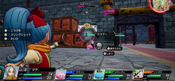 8、如前所述,玩家所操控的角色并非是与伙伴怪物并肩杀敌,而是更倾向于在远处使用弹弓来支援伙伴怪物,时刻关注他们的 HP 和 MP,及时予以回复,由此可见伙伴怪物有多可靠。当然,即使玩家不参加战斗,只要伙伴怪物打倒了敌人,队伍全员也都会得到经验值。
