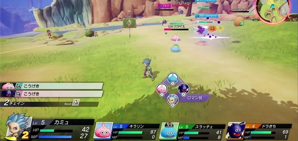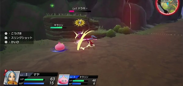 1、降落到「无尽的龙之大地」后,玩家便可以控制玛雅开始推进故事。在可爱的史莱姆「亮晶琳」成为伙伴之后,立刻就会在原野上遇到多拉奇,开启战斗教程。