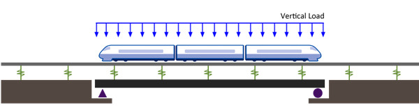 增加了模拟铁路与桥梁相互作用的功能,可考虑道砟和扣件对轨道的非线性支撑作用。支撑属性可随车辆荷载而变化。
