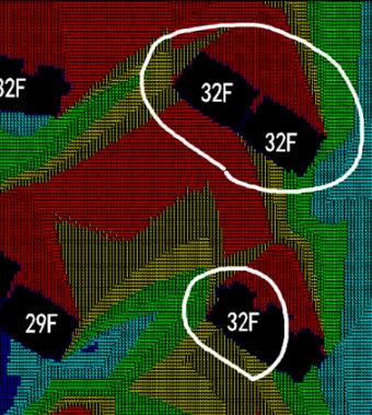 2.等高标注: 是对优化计算的结果通过文字标注和颜色控制来直观反映建筑物本身的高度情况