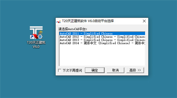 6、双击桌面图标,电脑需要安装CAD软件才能启动天正插件。