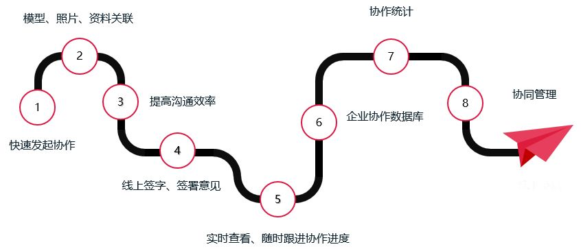 鲁班协同实现了施工过程中协作工作的完整闭环,从协作发起到最终实现管理功能,有一整条闭环路径。
