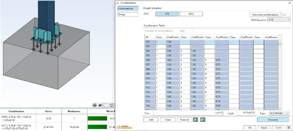 从 2022 版本开始,可以使用所有组合或使用自动确定的组合包络来设计 Steel Connection 模块中可用的所有连接。在这种情况下,仅对满足多个包络标准的组合进行连接分析,确保选择为单个验证提供最小/最大力的所有组合。从而大大减少了更多组合的计算时间。