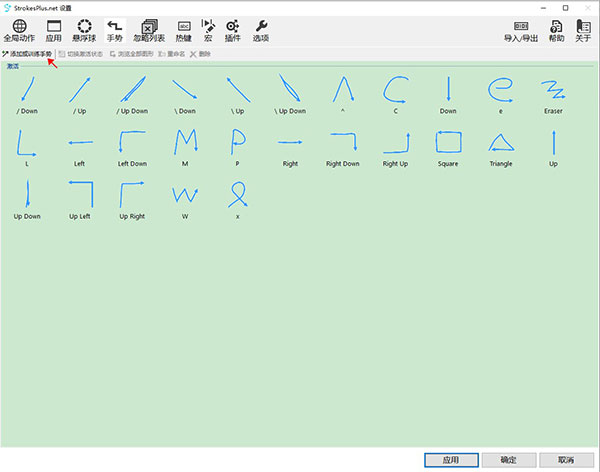 您可能要做的第一件事是查看基本选项和现有手势。默认情况下,右鼠标按钮被设置为你的初级冲程按钮。这意味着当您按住鼠标右键并移动鼠标时,StrokesPlus.net将开始分析图形以查看您是否绘制了匹配的手势。释放鼠标右键后,会将最终图形(以及任何修改器,其后更多内容)与现有动作进行比较,以确定哪些动作(如果有)被匹配并执行相应的脚本。