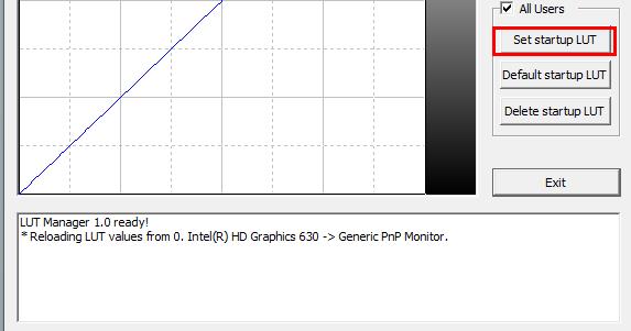 4、最后只要按Set startup lut,将该配置文件作为开机默认设置就OK了。
