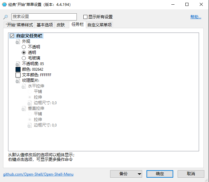 除了经典的开始菜单和Explorer工具栏外,Open-Shell还允许用户自定义任务栏的外观、透明度、颜色等属性。此外,用户还可以自定义开始按钮的样式和皮肤,以及菜单项的内容和排序方式。
