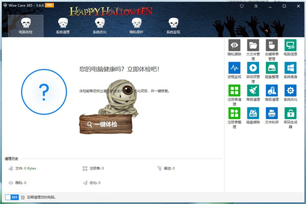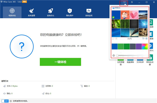 wise care 365 pro是一款功能专业并且十分强大的系统优化工具,是提高您的PC性能的最佳解决方案。软件功能性十足,支持隐私擦除、进程监视、注册表清理、注册表整理、大文件管理、启动项管理、常规清理、磁盘擦除、右键菜单管理、磁盘整理、高级清理、文件粉碎、系统瘦身、系统优化等多种功能,利用此软件的系统清理,可以享受全世界最快的扫描速度,轻松加速你的电脑!除此之外,wise care 365 pro中文版软件内置的密码生成器,可根据一定的条件生成密码,使用起来非常的方便。如果此时的你电脑运行缓慢,卡顿,那么不妨来试试wise care 365 pro,快来下载体验一下试试看吧!
