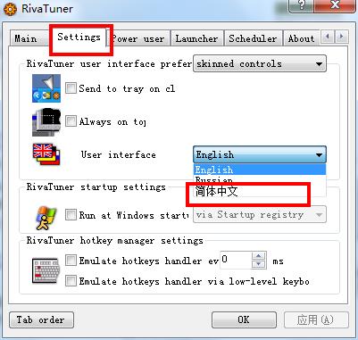 打开rivatuner中文版,然后点击“settings”,在“user interface”栏中选择“简体中文”即可,点击“ok”