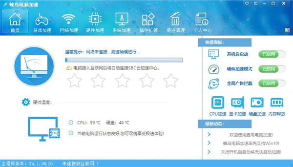 全新界面:简单、清新、宁静游戏加速:提高游戏响应速度,打造完美游戏体验