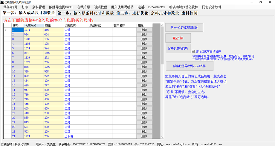 1、优化率高:根据不同的成品尺寸和原条料使用情况而不同,一般都在99.5%以上,成品种类和原条料多时大部分能达到99.9%以上,是目前市面上优化率最高的型材切割软件。并支持多种成品(最多500种)和多种原条料同时进行排版下料优化,以得到更高的优化率。2、导入导出功能:方便从Excel以及Word中复制数据直接粘贴到软件中,方便操作,减少错误。