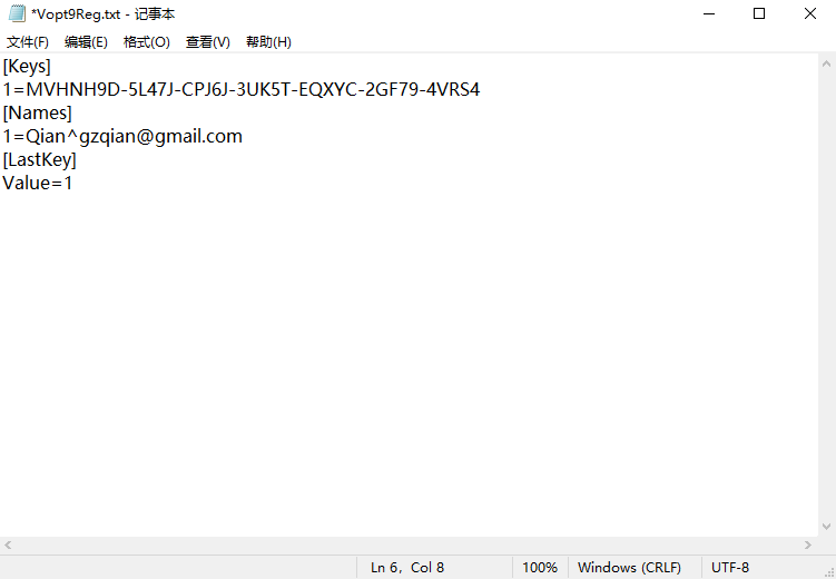 2、当然用户也可以自己新建TXT文本文件,将以下内容复制到其中保存为“Vopt9Reg.txt”。