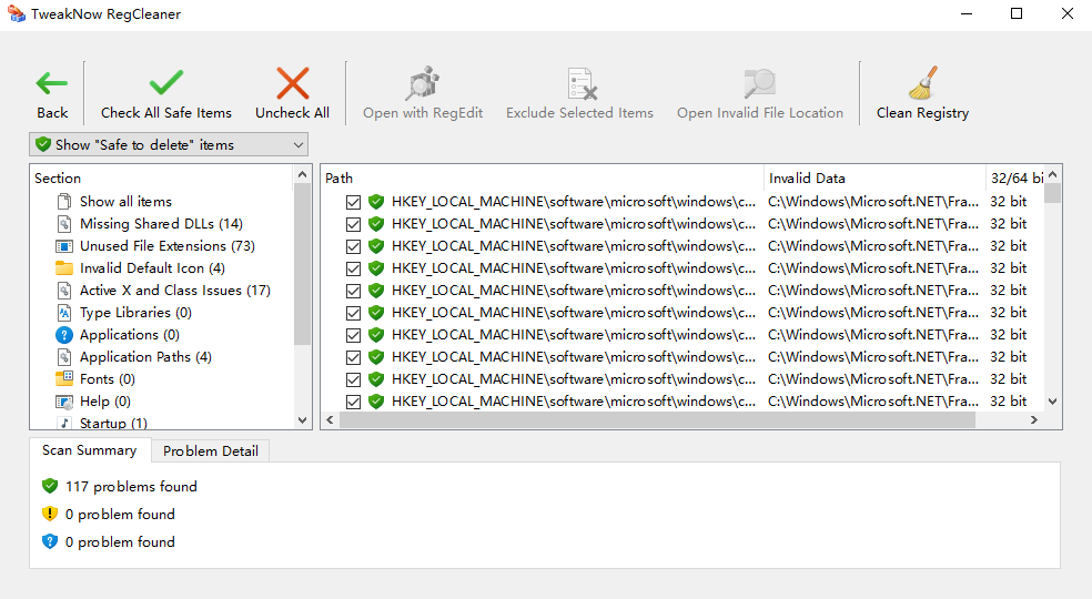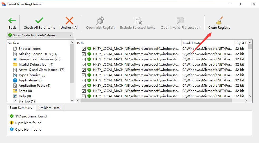 3、安全的:TweakNow >RegCleaner自动创建备份文件,然后从注册表中删除过时的条目。