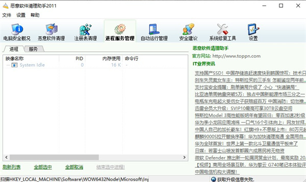 4、而进程服务管理是针对很多的恶意进程。
