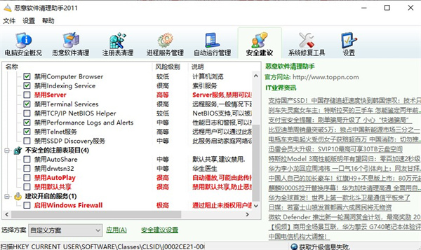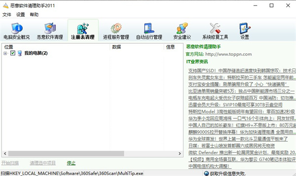 3、注册表清理主要是针对很多恶意软件对注册表的一些破坏进行修复。