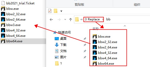 7、将bbw.exe(32位) bbw64.exe(64位)和realband.exe分别解压至相关的安装文件夹后覆盖即可完成;