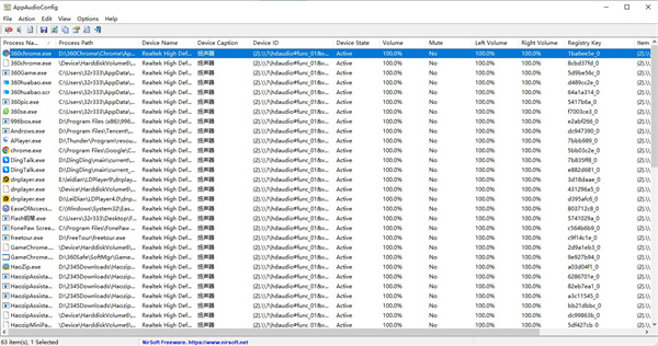 AppAudioConfig官方版是一款简单好用的电脑程序音量调节软件,它能够帮助我们快速调节各个程序的音量大小,还能调节左声道、右声道分别的音量大小,让电脑所输出的音频效果达到我们的需求。软件操作起来也非常简单,运行程序后,点击所需调节的程序,调整至最理想的声音效果就好了。除了调节大小,AppAudioConfig还能批量进行操作,如批量静音程序,批量调节音量大小等,非常便捷实用。软件还有查找功能,当桌面运行程序较多时,使用此软件就能快速查找到想要调节的程序了,有需要的朋友欢迎下载使用。