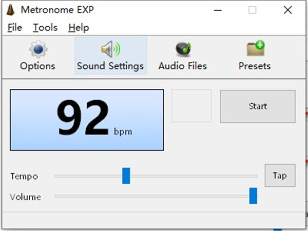 Metronome EXP是一款音频节拍器工具,用于令学习音乐的人更容易掌握节奏。在界面会显示出每分钟的节拍数量,并且允许用户对速度进行调整,控制节拍数量,点击Start即可开始。