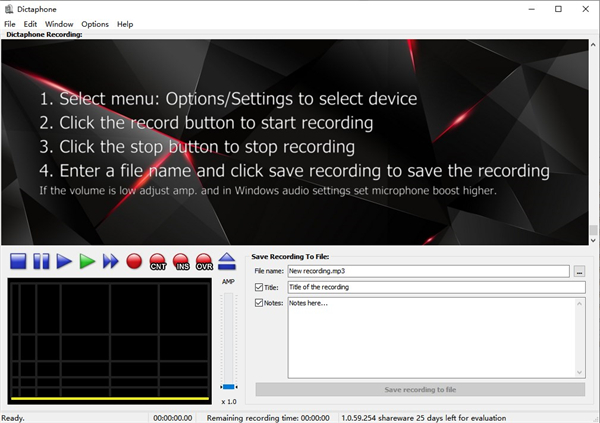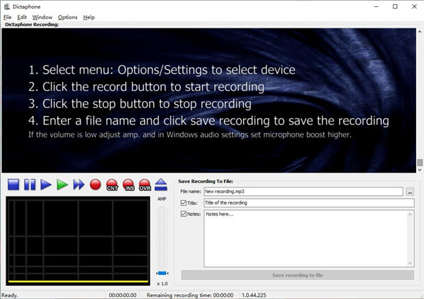 1、流畅直观的图形界面Dictaphone的安装时间并不长,并且没有复杂的设置,您在实际使用它之前就需要完成该设置,还具有一个非常直观的图形界面,并且具有许多不错的功能和工具