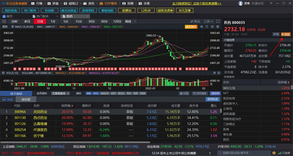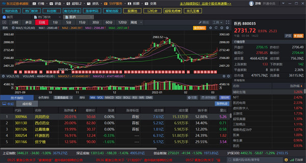 3、我们可以直观的看到许多行业的涨跌情况,例如医药、超级真菌、维生素、云游戏等等,点击进入。