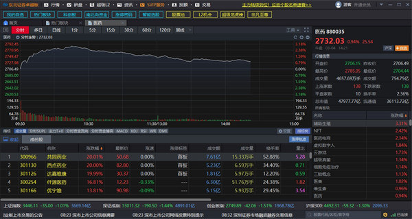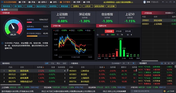 6、支持对当前的市场风向、大盘透视、板块资金等实现盯盘操作;