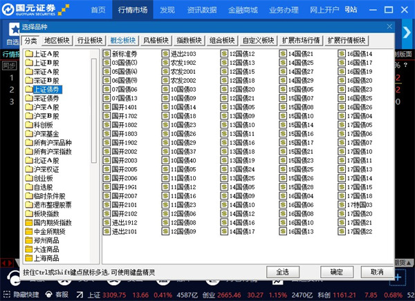 3、找到心仪的版块后可以自由挑选不同的股票,点击确定即可。