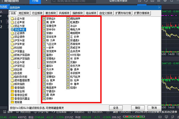 3、选择后在其右侧会出现许许多多的股票,此时用户们就可以开始自选了。