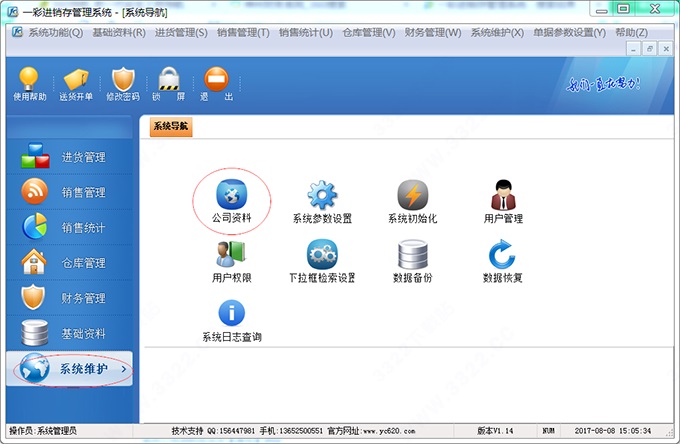 进入软件后,在软件的【系统维护】功能下【公司资料中】设置公司的名称,地址,电话等资料