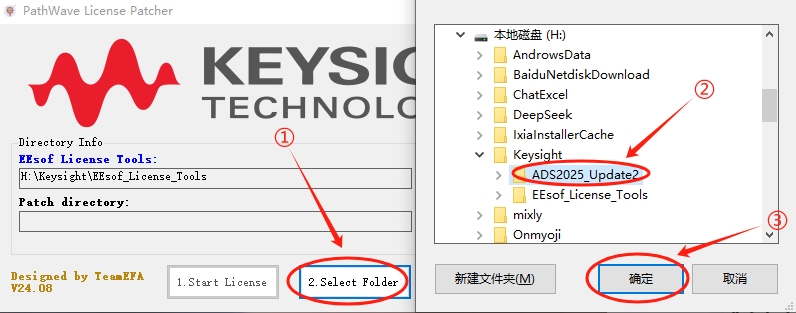 17、点击【Select Folder】,找到安装路径并选中【ADS2025】,点击【确定】。