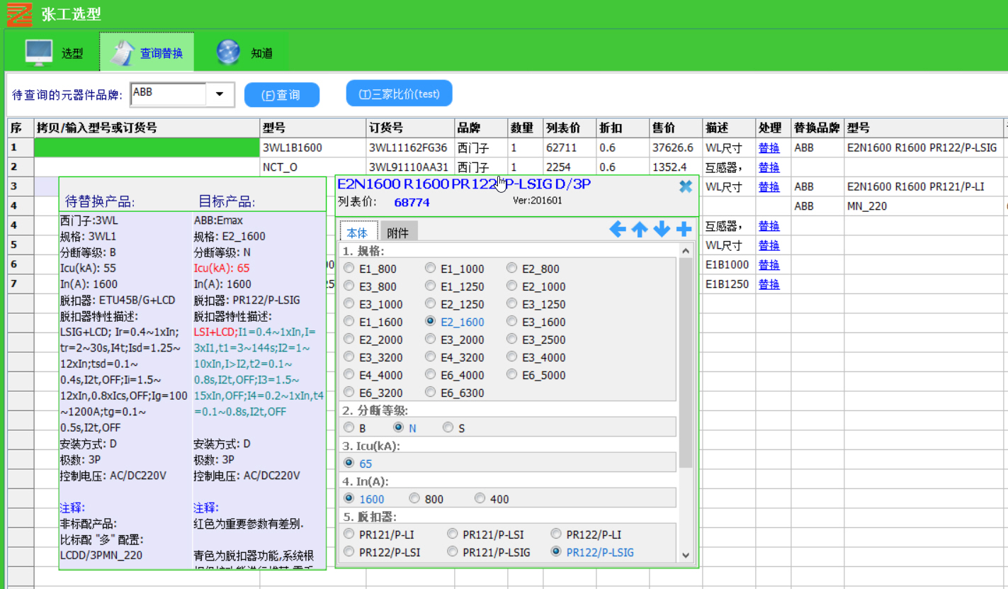 2、好用,简单的替换功能,自动给出满足技术要求的替换产品