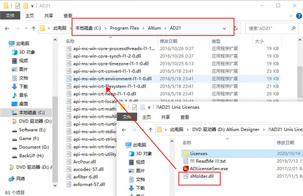 7、接下来将补丁文件下的“shfolder.dll”复制到源程序安装目录下;