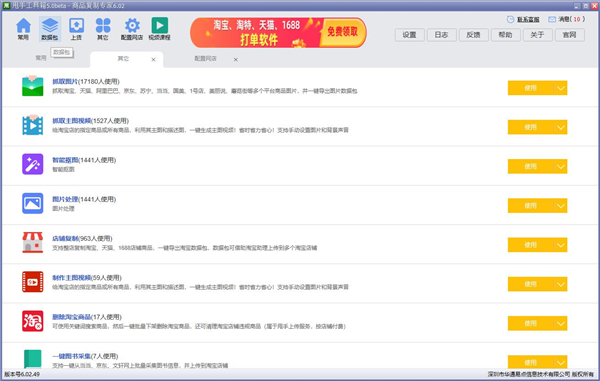 1、跨平台任意复制只要是淘宝、天猫、QQ网购、拍拍、阿里巴巴、国美、美丽说、1号店、当当和苏宁的宝贝商品,任意店铺的宝贝,都能轻松复制。