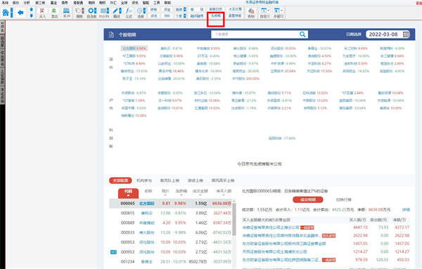 6、东吴证券秀财金融终端可以分析的股票数据很多,可以选择不同的版块分析,也可以选择龙虎榜分析;