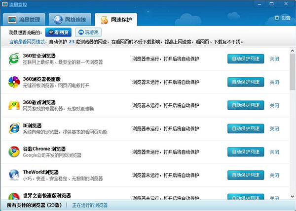 3、可直接管理软件的上网速度,看视频、看网页、玩网络游戏都可直接管理