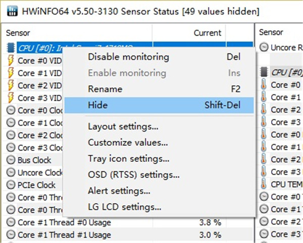 由于默认的标签名不一定适合在OSD显示,可在右键菜单选择Rename重命名,此处我将Core Max重命名为CPU TEMP