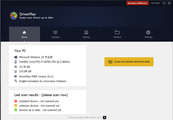 2、点击SCAN FOR DRIVER UPDATES Now即可你的驱动以及需要更新的驱动;