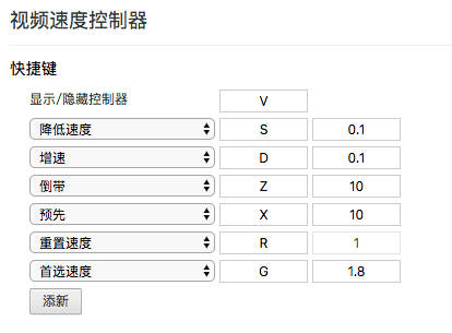 4、你可以在扩展程序设置页面中自定义和重新指定默认快捷键,也可以添加其他快捷键以匹配您的首选项,例如,为多个不同的首选速度快捷键分配不同的值,这样就可以在最常用的速度之间快速切换,要添加新快捷方式,请打开扩展程序设置,然后单击Add New