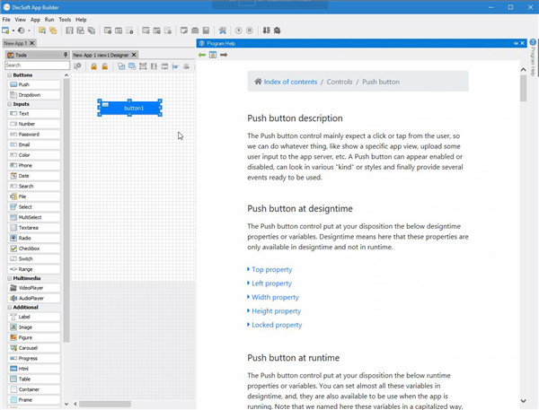 DecSoft App Builder 有一个上下文帮助,可以准确地将您指向控件、属性、事件引用等。只需在 IDE 中按 F1 键即可