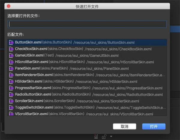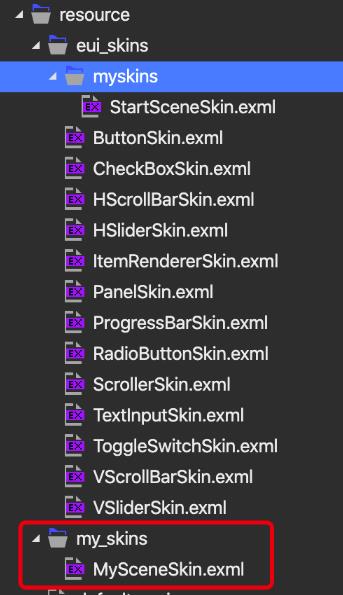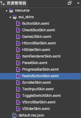资源管理器面板可以用来浏览和管理项目中的 EXML 皮肤文件