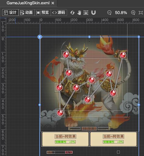 这部分是Egret UI Editor免费版的核心区域,在此区域可以编辑界面,制作动画,修改Exml源码,以及预览界面最终效果