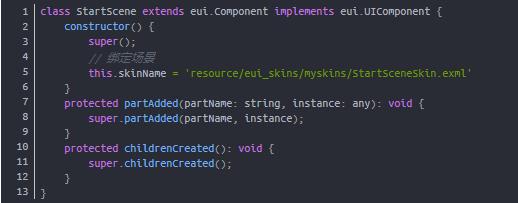 创建场景resource/eui_skins/myskins/StartSceneSkin.exml