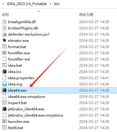 1、下载完成后打开bin文件夹下的idea64.exe程序文件。