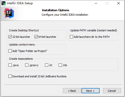 4、勾选创建桌面快捷方式,32位和64位建议都勾选,关联文件请行选择;